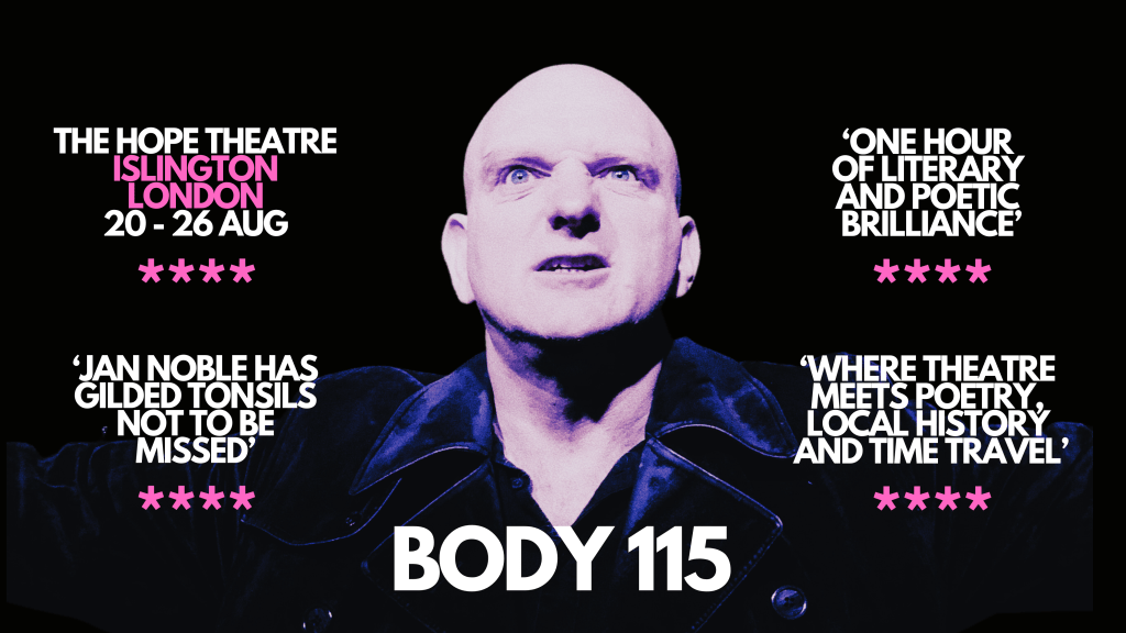 “Body 115 is a mini verse-drama, a tale of inner and outer journeys in explicit homage to Dante’s Divine Comedy written and performed by poet Jan Noble.