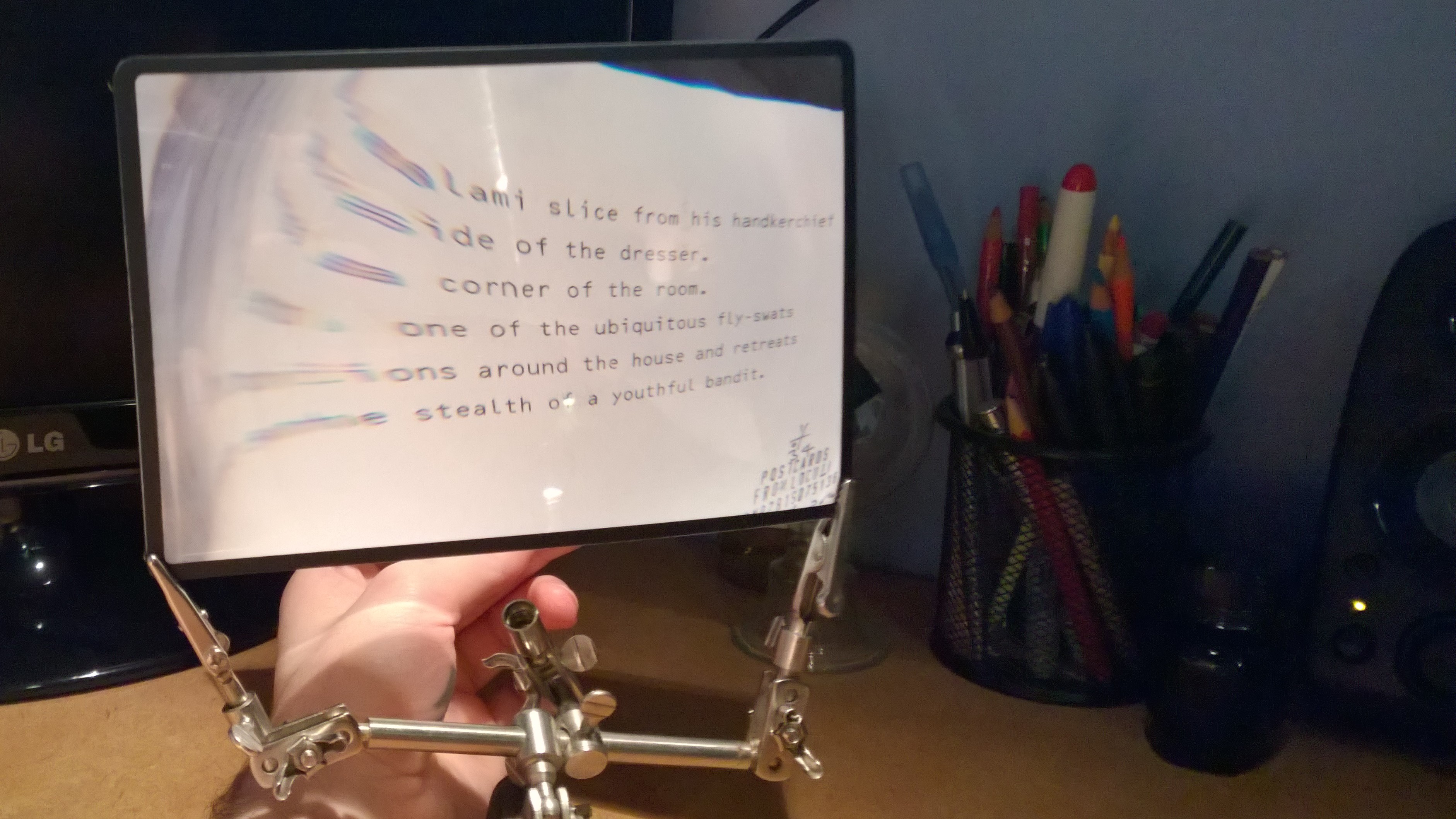 Recipients were invited to photograph their postcards and publish them on social media. The photographs here are published in the order I received them. This is the only way the poem is currently available to read as a whole.